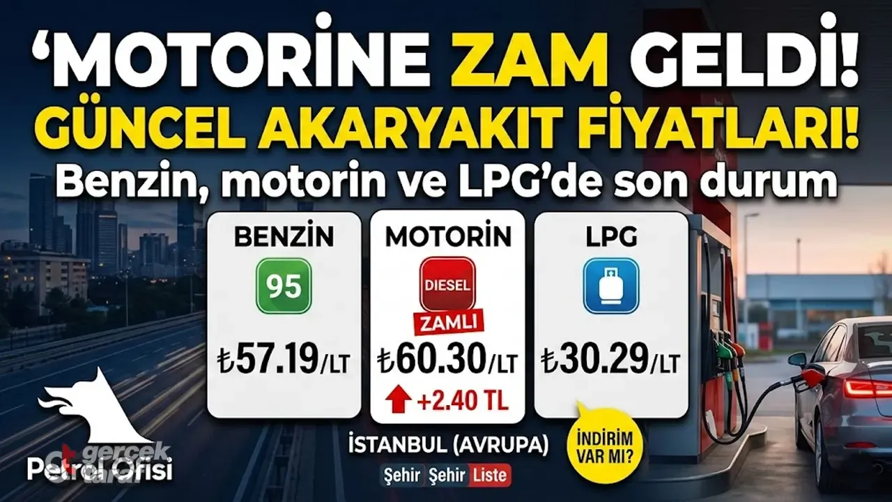 Brent petrol ve kurlarda yaşanan hareketlilik sonrası motorin litre fiyatına 24 Şubat 2026 gece yarısından geçerli olmak üzere 2,40 TL zam yapıldı . Bu zammın ardından motorinin litresi 81 ilde 60 liranın üzerine çıktı . 26 Şubat Perşembe günü itibarıyla ise benzin, motorin ve LPG fiyatlarında herhangi bir zam ya da indirim uygulanmadı .