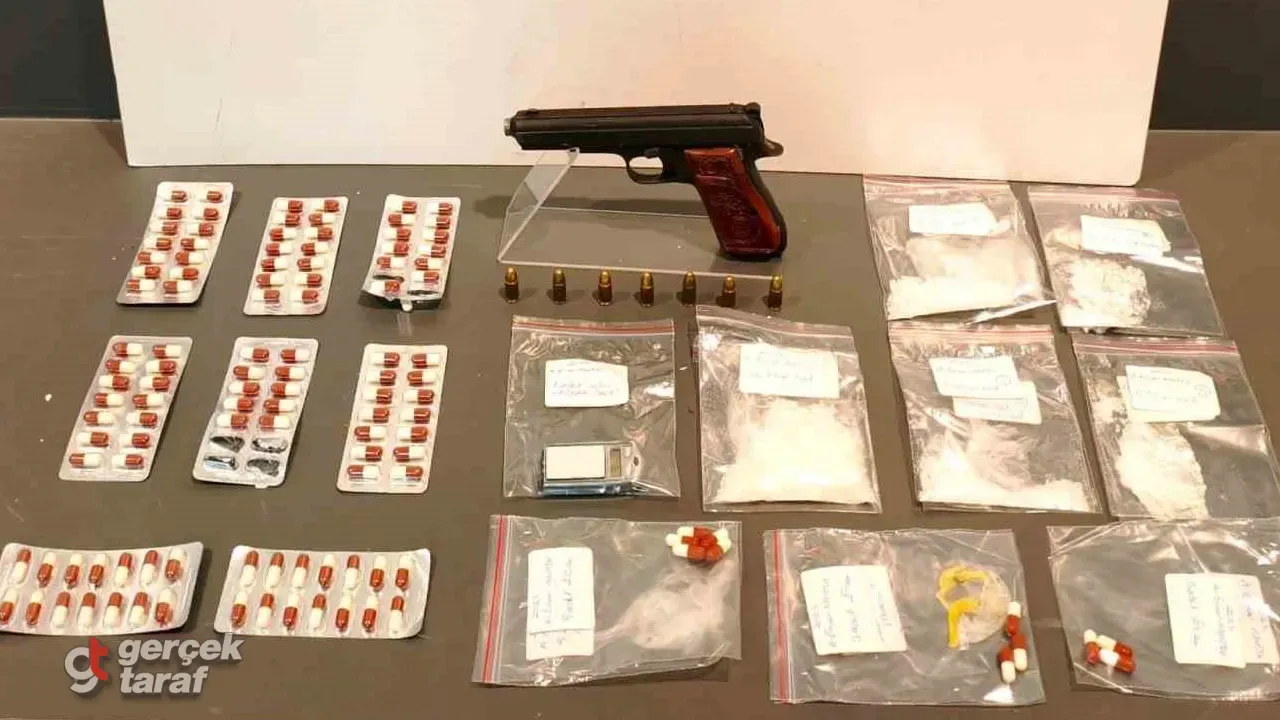 Aynı arama kapsamında 1 adet ruhsatsız tabanca ile 7 adet tabanca fişeği de ele geçirildi. Elde edilen bulgular doğrultusunda gözaltına alınan A.E.M. hakkında adli mercilerce gerekli işlemler başlatıldı.