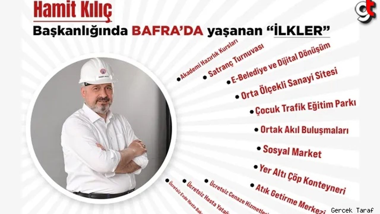 Bafra Belediye Başkanı ve Cumhur İttifakı AK Parti Bafra Belediye Başkan Adayı Hamit Kılıç, göreve gelmesinin ardından bir çok belediye tarafından referans gösterilen projelere start vermesinin yanında Bafra Belediyesi, tarihinde bir ilk olarak kabul edilen pek çok uygulama ve projeyi de hayata geçirdi.