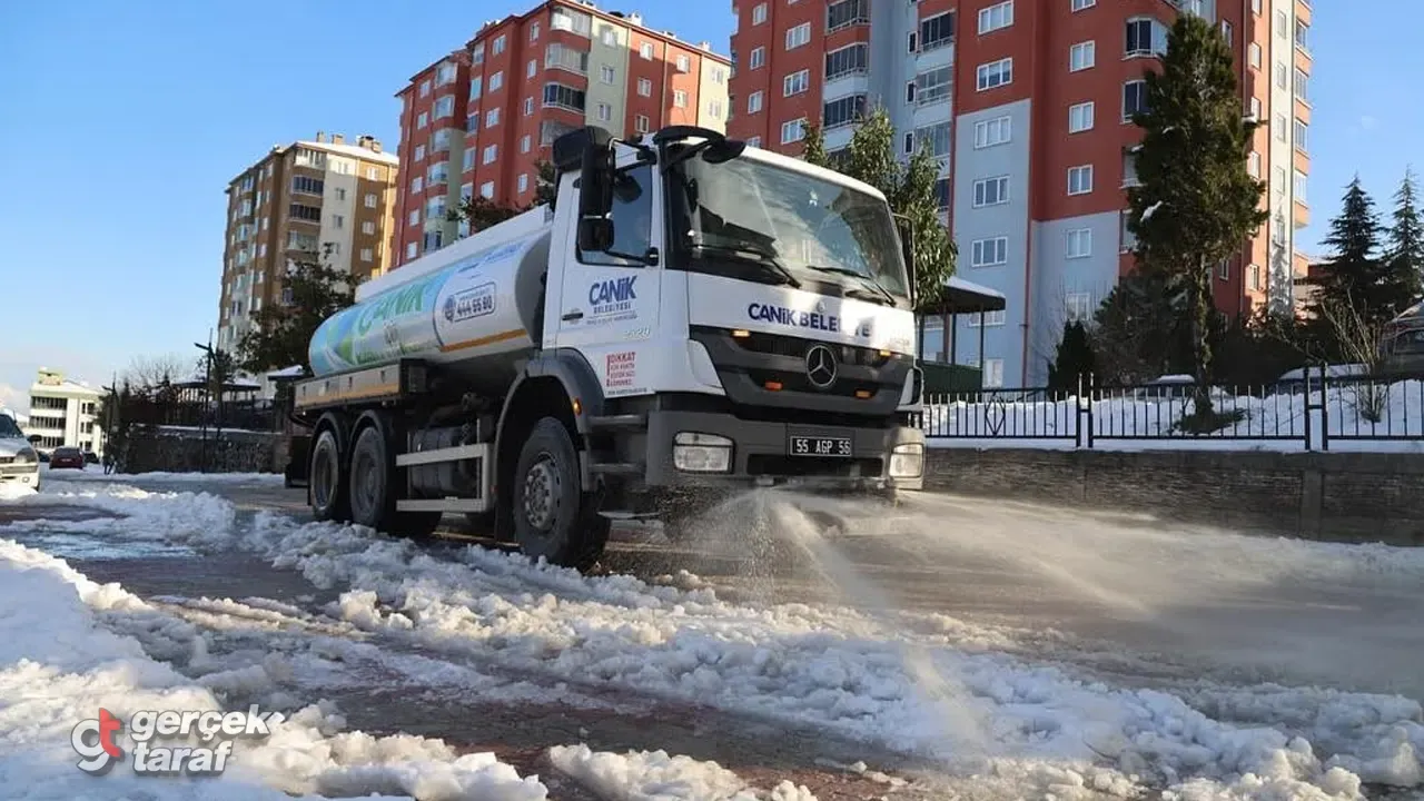 Kar yağışının ardından özellikle buzlanma ve don riskine karşı önlemlerini artıran Canik Belediyesi ekipleri, ilçenin ulaşım ağını açık tutmak için yoğun bir çalışma yürütüyor. Vatandaşlardan gelen taleplere hızlı şekilde müdahale eden ekipler, solüsyon ve tuzlama uygulamalarıyla sürücü ve yayaların güvenliğini sağlamayı hedefliyor.