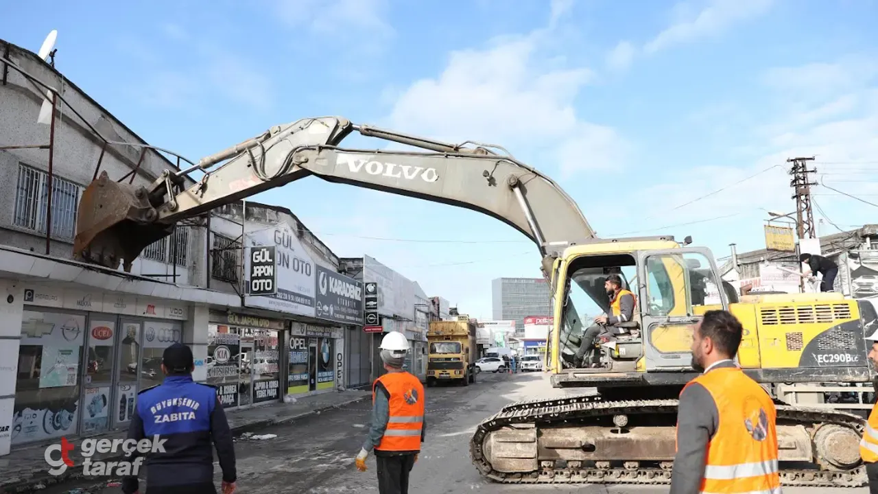 Gülsan Sanayi Sitesi’nde faaliyet gösteren esnaf, iş yerlerini kademeli olarak Toybelen Sanayi Sitesi’ne taşıyor. Boşaltılan alanlarda yıkım çalışmaları planlı, kontrollü ve etaplar halinde gerçekleştiriliyor. Taşınma ve yıkım süreçlerinin eş zamanlı yürütülmesi, sahadaki ilerlemeyi hızlandırıyor. Böylece dönüşüm süreci düzenli ve koordineli biçimde sürdürülüyor.