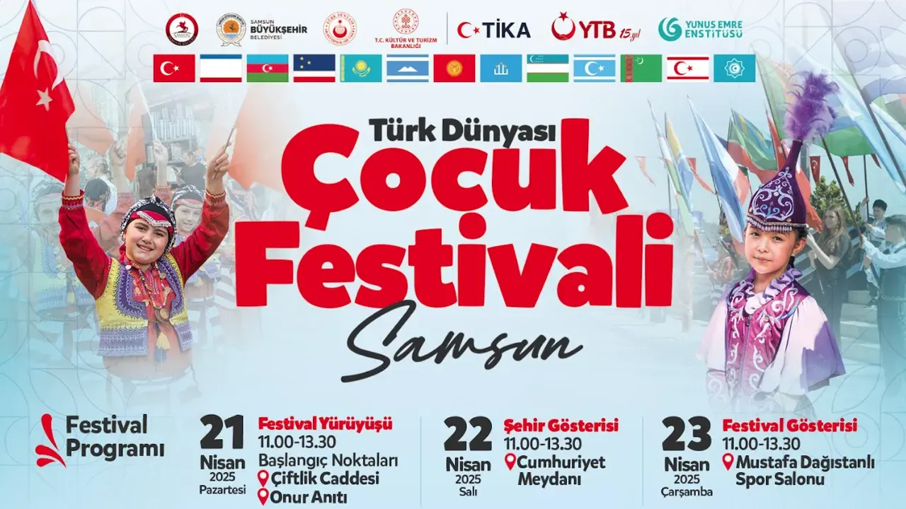 Samsun Büyükşehir Belediyesi, "Kültür ve Sanat Şehri Samsun" vizyonuyla hayata geçirdiği etkinliklere bir yenisini daha ekliyor. Türkiye Cumhuriyeti Kültür ve Turizm Bakanlığı, Samsun Valiliği, Türk Dünyası Araştırma Vakfı, TİKA, YTB ve Yunus Emre Enstitüsü'nün değerli iş birlikleriyle düzenlenen Türk Dünyası Çocuk Festivali, 21 Nisan'da başlayacak ve üç gün boyunca birbirinden renkli etkinliklere sahne olacak.