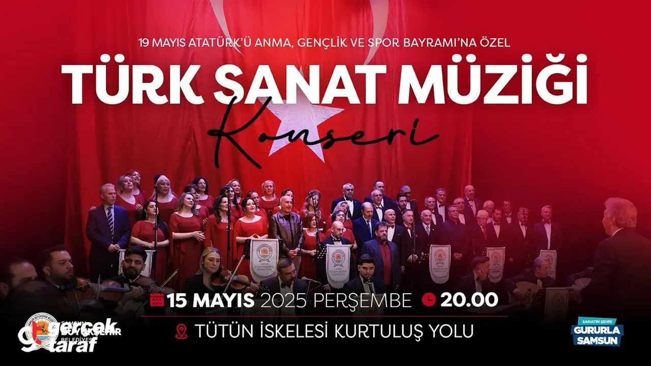 Milli Mücadele'nin simge şehirlerinden Samsun, 19 Mayıs coşkusunu sanatla yaşamaya hazırlanıyor. Samsun Büyükşehir Belediyesi, 15 Mayıs Perşembe akşamı saat 20.00’de, Tütün İskelesi Kurtuluş Yolu’nda gerçekleştirilecek Türk Sanat Müziği Konseri ile bayramın ruhunu vatandaşlarla birlikte paylaşacak.