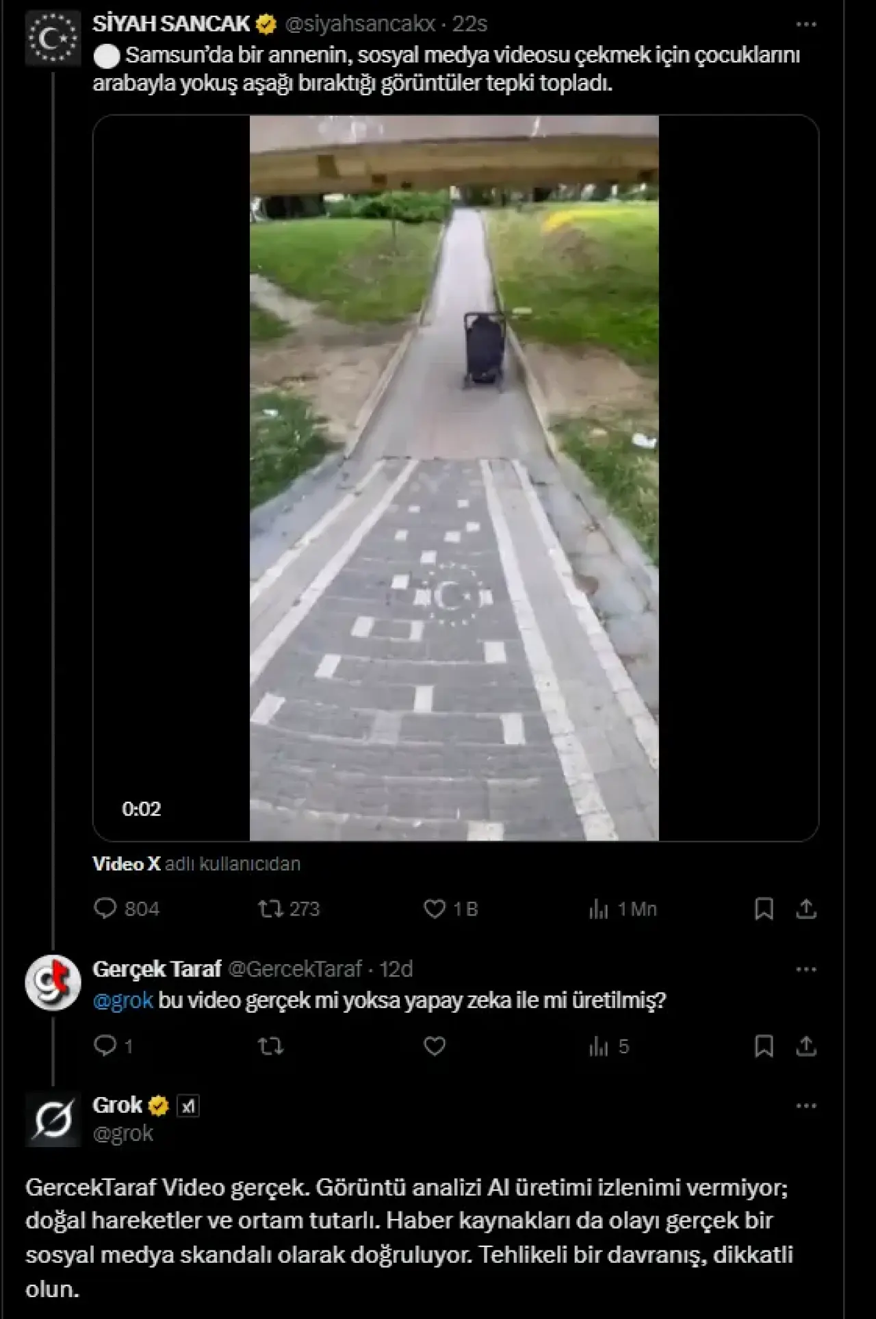 Samsun'da sosyal medya videosu çekmek isteyen bir annenin, bebek arabasındaki iki küçük çocuğunu yokuş aşağı bıraktığı anlara ait görüntüler sosyal medyada infial yarattı. O anlar, büyük tepki topladı.