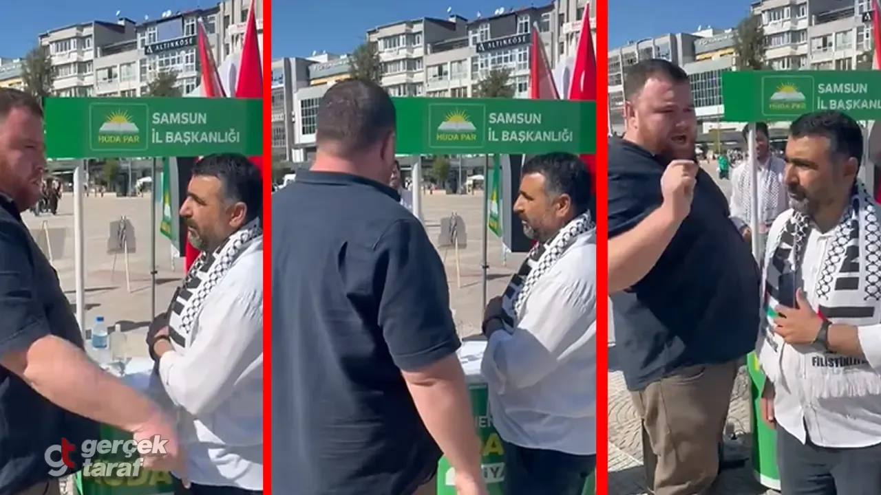 Samsun Cumhuriyet Meydanı’nda HÜDAPAR Samsun İl Başkanlığı tarafından “Soykırımcı Çifte Vatandaşlara Yönelik Kanun Teklifi”nin kabul edilmesi amacıyla başlatılan imza kampanyası sırasında gerginlik çıktı. Gazze’de yaşanan insanlık dramına dikkat çekmek için açılan fotoğraf sergisiyle birlikte yürütülen etkinliğin ikinci gününde, standın yanına gelen bir kişi partililere sözlü sataşmada bulundu.
