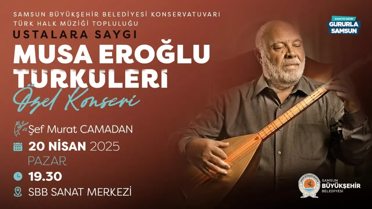 Samsun'u bir sanat ve kültür şehri yapma vizyonuyla hareket eden Samsun Büyükşehir Belediyesi, düzenlediği sosyal ve kültürel etkinliklerle vatandaşları sanatın farklı renkleriyle buluşturmaya devam ediyor. Bu kez, Türk halk müziğinin usta ismi Musa Eroğlu'na saygı duruşu niteliğinde bir konser organize ediliyor.