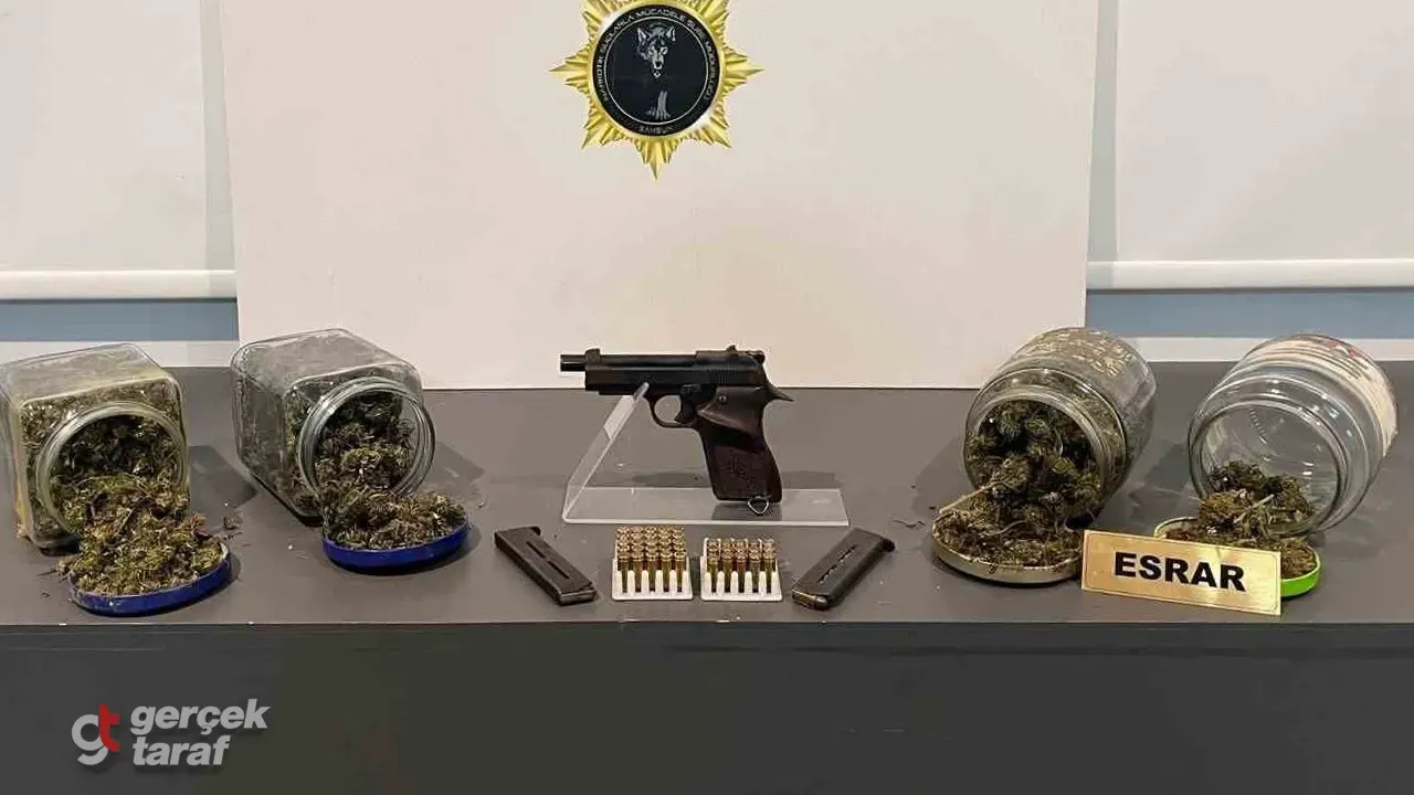 Samsun İl Emniyet Müdürlüğü Narkotik Suçlarla Mücadele Şube Müdürlüğü ekipleri, İlkadım ilçesinde düzenlediği operasyonda 211 gram esrar, 1 adet ruhsatsız tabanca ve 48 adet fişek ele geçirdi. Operasyon kapsamında M.K. (55) isimli şahıs gözaltına alınarak adli makamlara sevk edildi.