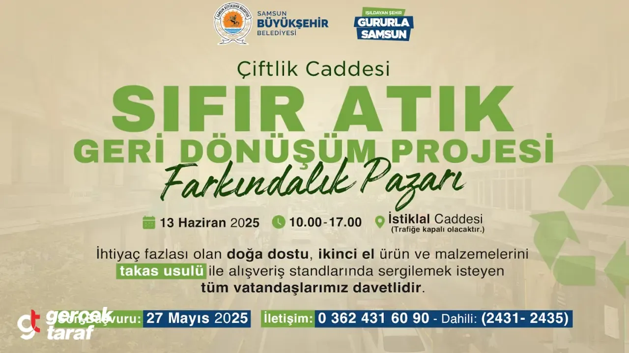 Sürdürülebilir bir yaşam vizyonuyla çalışmalarına devam eden Samsun Büyükşehir Belediyesi, çevreci projelerine bir yenisini daha ekliyor. Çiftlik Caddesi Sıfır Atık Dönüşüm Projesi Farkındalık Pazarı, ihtiyaç fazlası, geri dönüştürülebilir, ikinci el ve çevre dostu ürünlerin takas usulüyle vatandaşlarla buluşacağı bir etkinlik olarak tasarlandı. Bu pazar, atıkları azaltarak hem ekonomik hem de çevresel fayda sağlamayı ve sürdürülebilir tüketim alışkanlıklarını yaygınlaştırmayı hedefliyor.