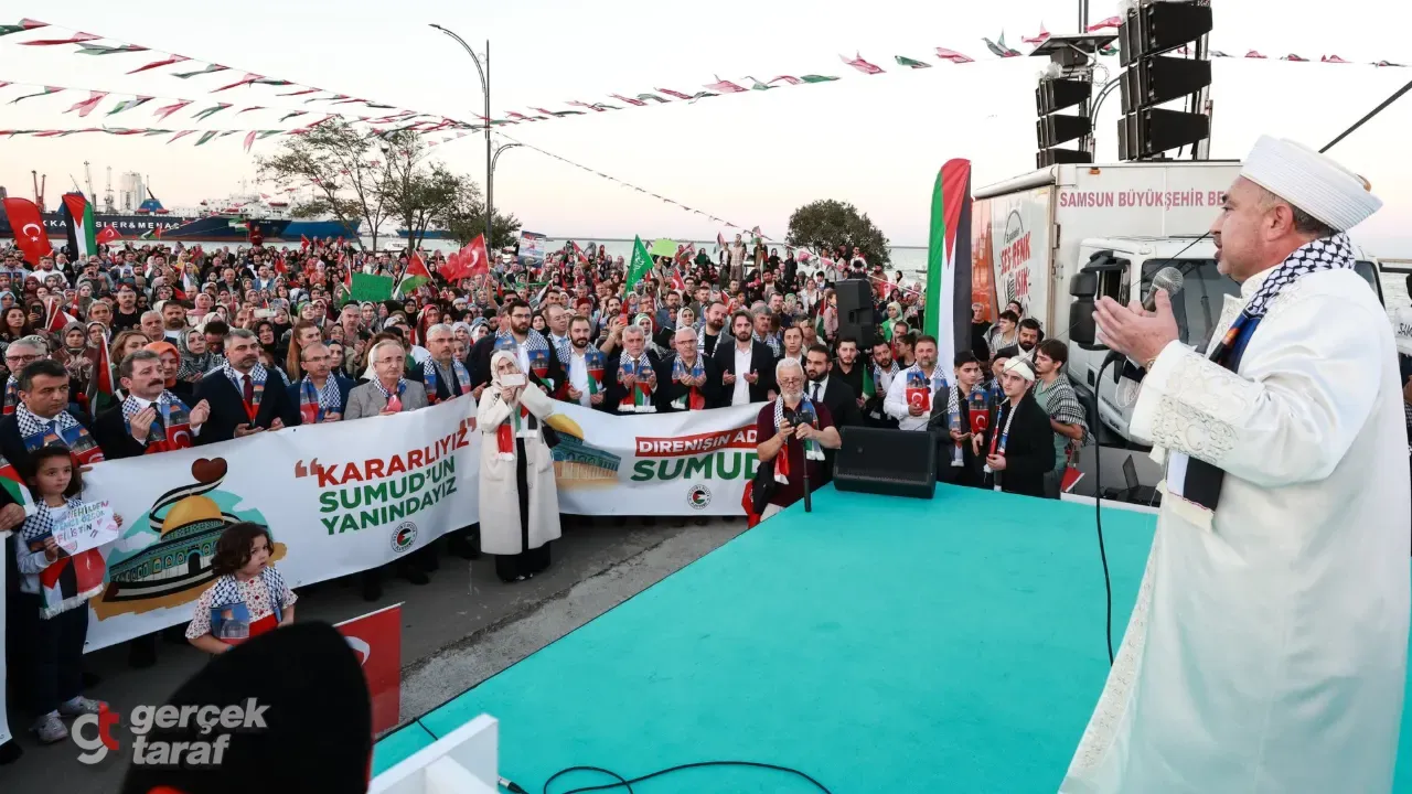 Samsun Valiliği’nin duyurduğu etkinlik kapsamında, Filistin’e destek için Samsun sahilinde geniş katılımlı bir program gerçekleştirildi. “Kararlıyız, Sumud’un Yanındayız” başlığıyla düzenlenen etkinlikte İsrail ablukasını kırmayı amaçlayan Küresel Sumud Filosu’na destek mesajı verildi.